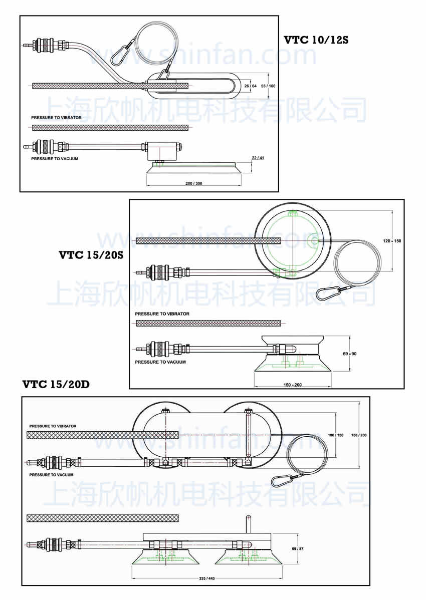 型號(hào)包括:VTC10S、VTC12S、VTC15S、VTC15D、VTC20S、VTC20D、VTC20T。強(qiáng)大的真空連接,快速連接,容易使用,理想的平面或曲面。